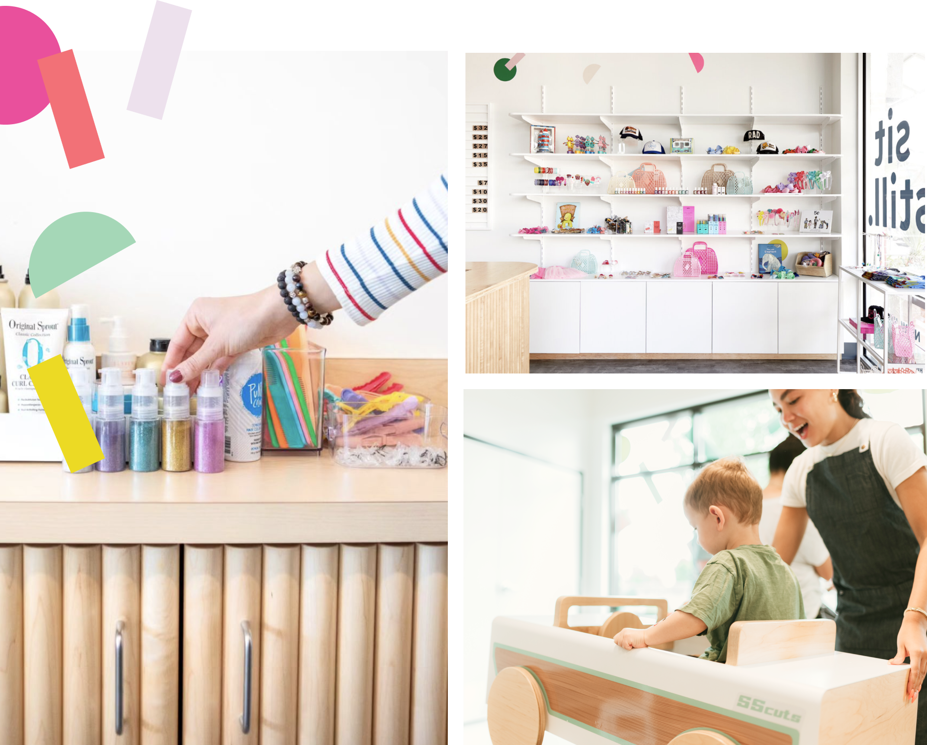 Welcome! Our salons are all about creating a fun-filled experience for everyone. We offer eco-friendly games and toys before appointments and individual tablets at each station. Our specialist stylists know just how to empower your children to express their unique personalities through their hair, turning every visit into a delightful. Take a seat, indulge in some "me-time," and let us handle the rest.